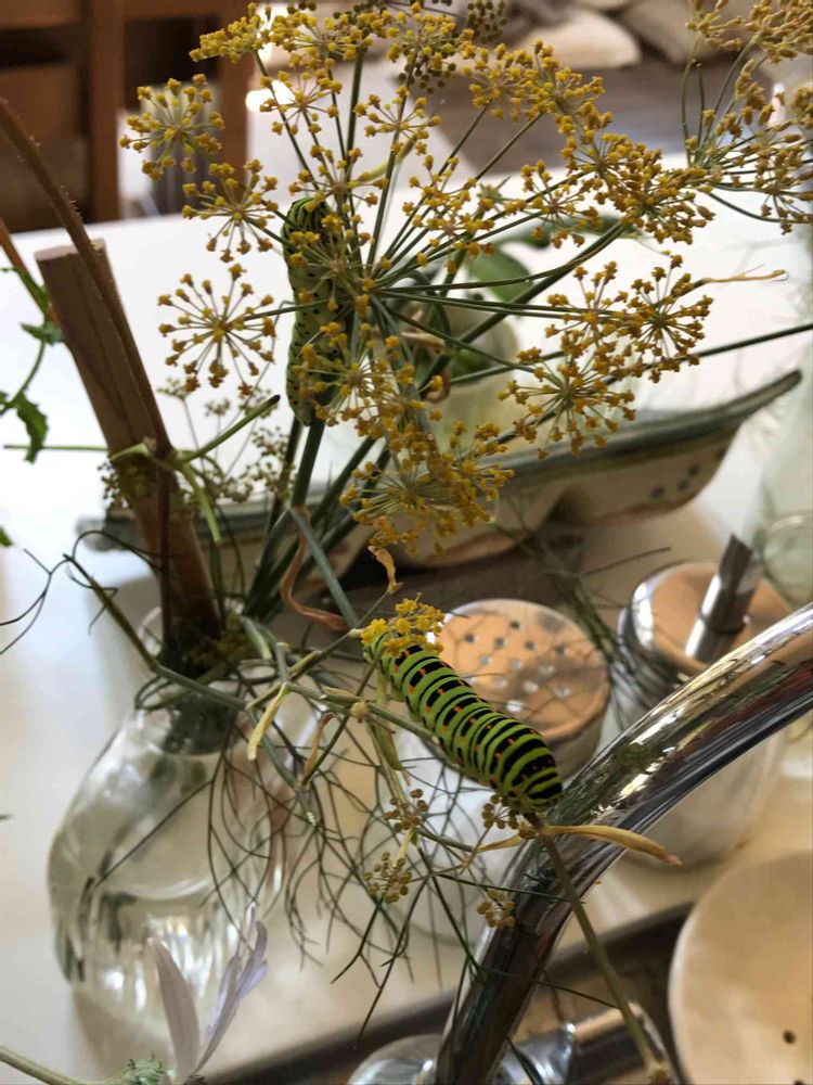 キッチンに飾ったフェンネルから孵ったキアゲハの幼虫…育ててみたらこんなに大きくなって💦