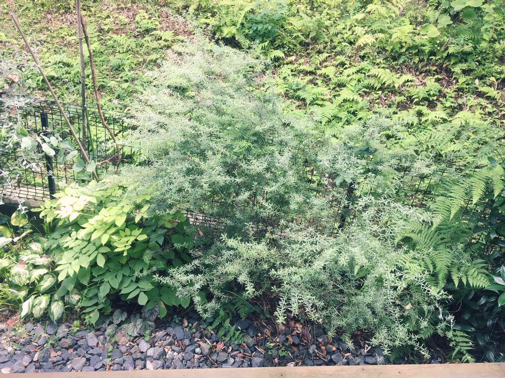 30センチのウエストリンギアの苗が、2〜3年で結構なブッシュ状に。梅雨前に大分剪定してるんですが。半日陰、割とジメジメして、周りにはシダが生えるような場所。けれどほっといてもガンガン伸びる、大きくなる。南関東の冬なら余裕な感じ。