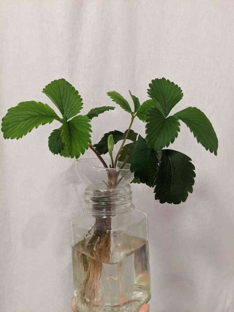 インスタントコーヒー☕の瓶で育ててるとちおとめ🍓