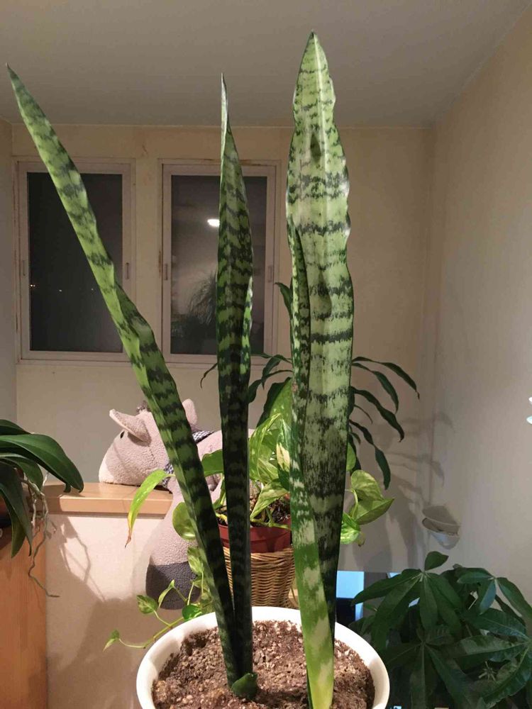 サンスベリアでまちがいないと思いますじょうずに育てるといい香りのする白い花が咲きます。