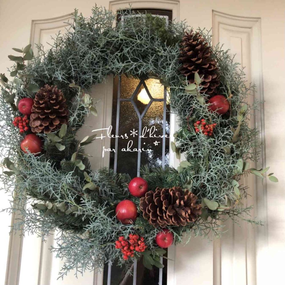 うわー素敵なお玄関に素敵なクリスマスリース🎄やわ🥰