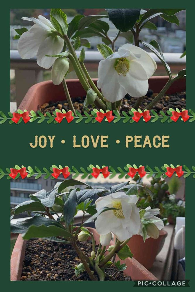 クリスマス✨🎄✨の雰囲気満載のコラージュですね~🎵楽しんでますね😉これからが開花の時期なのでお店で売っているものは一足咲きに咲いてますね😃