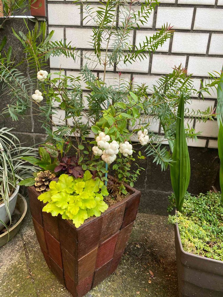 花ではなくグリーンの木やリーフ🌿の寄せ植えも作りました。