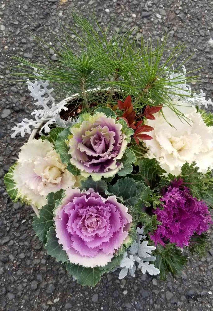 黒松と葉牡丹の寄せ植え