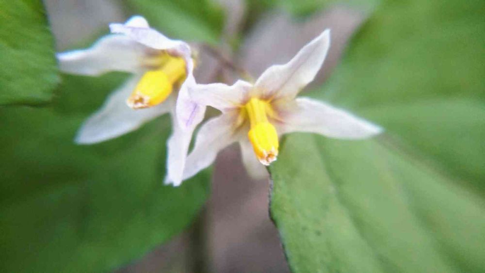 水の無い側溝に咲いているのを発見。🍆ナス科のイヌホオズキの花。まぁるい実はミドリからブラックに変わっていくみたい✨実は撮らなかったけどブルーベリーっぽいです。別名が可哀想で、バカナス😅