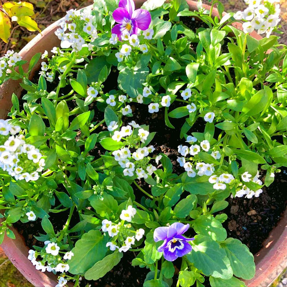 アリッサムとももかの うみとピーチの寄せ植え 下に黄色のチューリップ球根が植えてあります♡春が楽しみ⤴︎