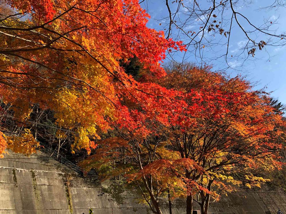 その道中、鬼怒川温泉♨️鬼怒楯岩大吊橋・五十里湖湖畔のほそいで食事後に、五十里湖を経て、国道400号の塩原温泉郷♨️♨️西側の入口の「誉山橋」付近の紅葉🍁🍂❗️