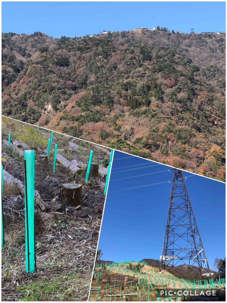 7日に歩いた近場の山は、今送電線の付け替えと鉄塔の立て替えが大々的に行われていて、工事の終わった後には新たに木が植えられていますが、保護のカバーがしてあるので何の木が植えてあるか分かりません。カバーが外され木を見るのが楽しみです。