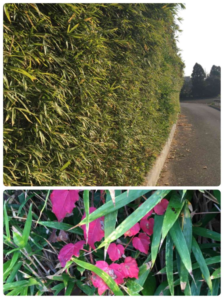 散歩道の笹の生垣。