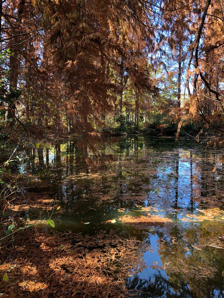 池に紅葉したメタセコイアが映える景色が、素晴らしくて💕