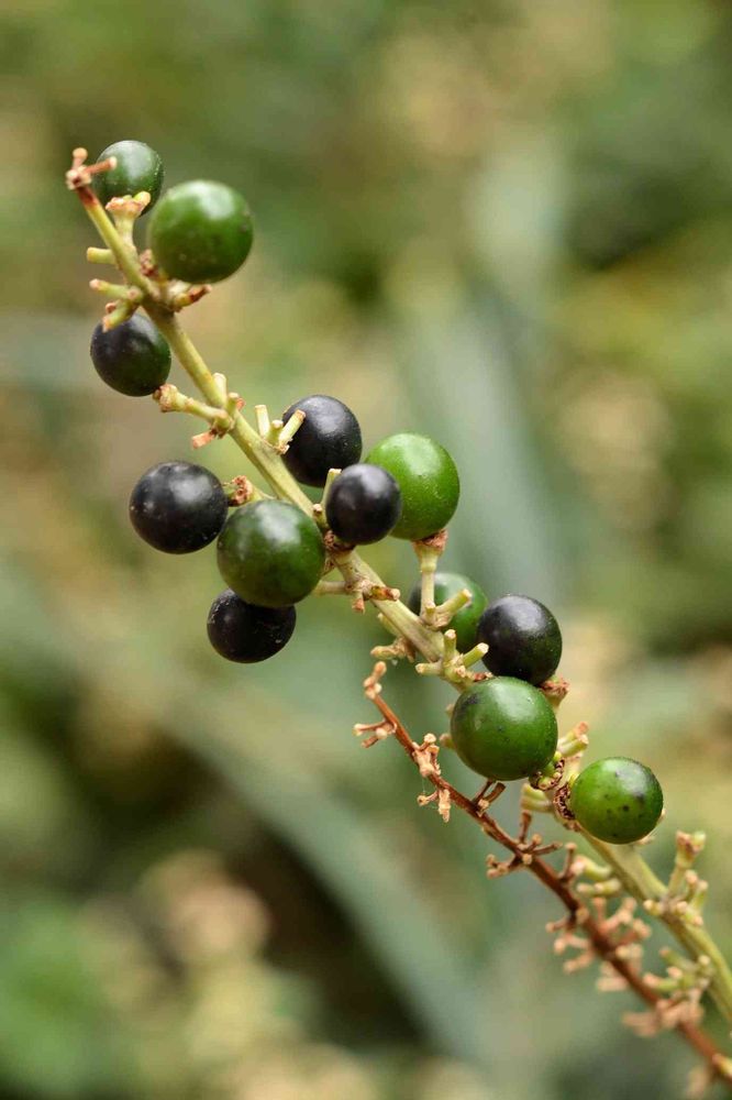ヤブランの実、黒くなる前は緑なんですね。明るい緑に深い緑…