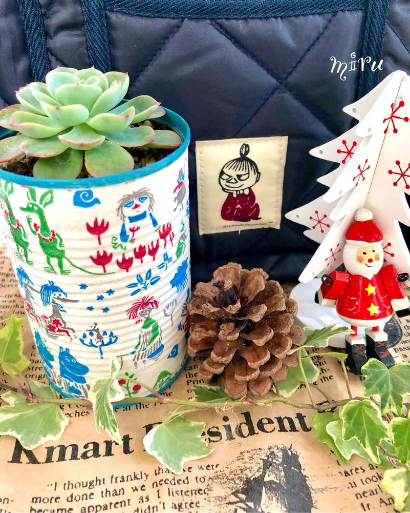 小さな模様だけどムーミンのリメ缶とミィのバックです(*˘︶˘*)