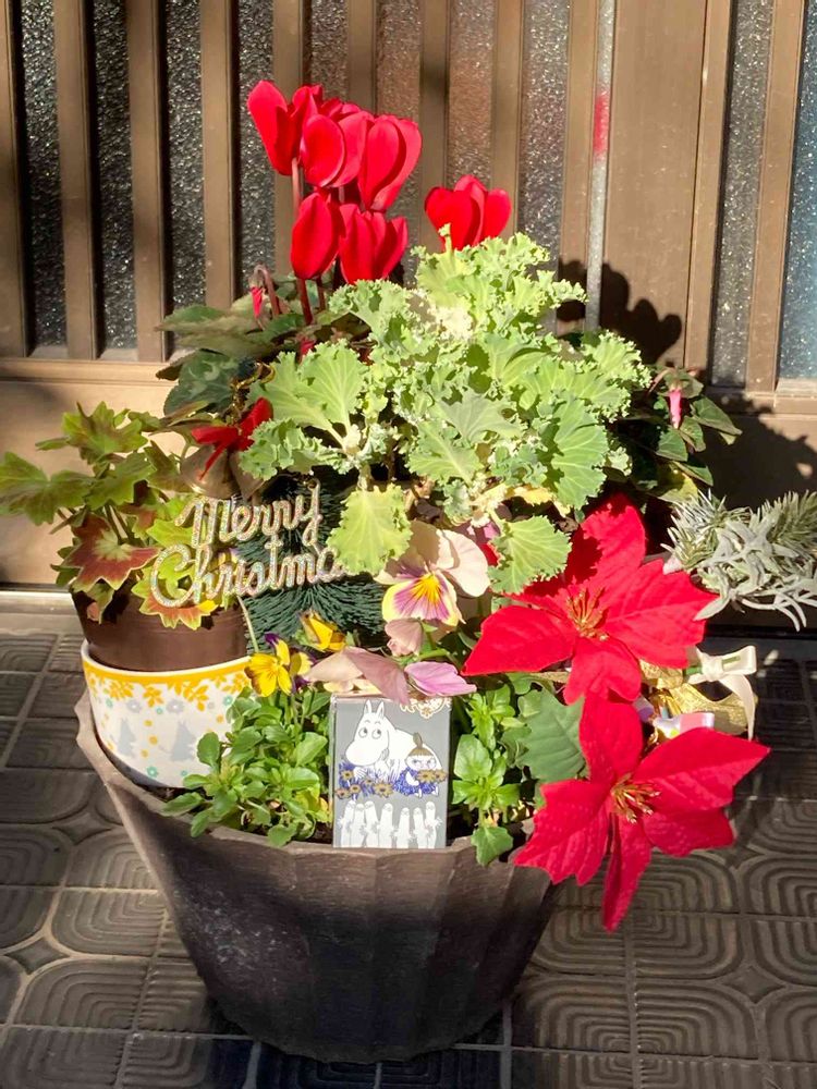 寄植え、クリスマスカラーで、素敵ですね😂🎄🤶✨