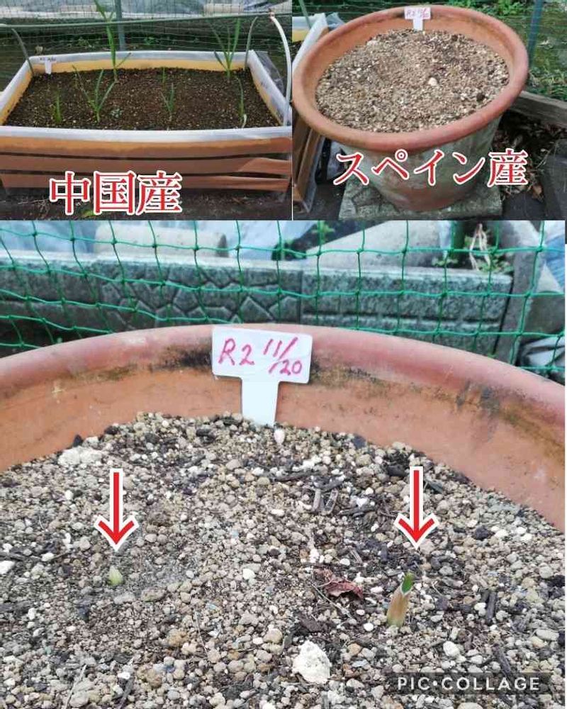 スペイン産のにんにく 同じ条件で植えたのに 右側のより 6日遅れて 発芽を 確認できました♪