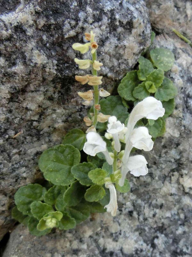 白いタツナミソウ(立浪草)が1輪だけ石垣の隙間から咲いています。
