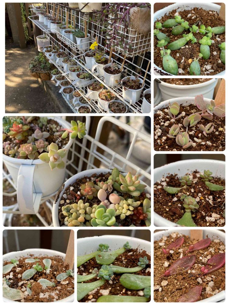 種類も増えて段々手におえなくなってきたのでネットで見つけた小さなブリキをズラリと並べて置いていき、育ったらチマチマ植えでまとめていく事に…