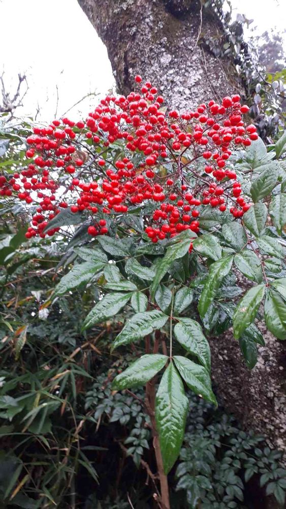 お寺の境内の南天🔴🌿雨に濡れて、ツヤツヤ🔴✨でした。(*´︶`*)❀