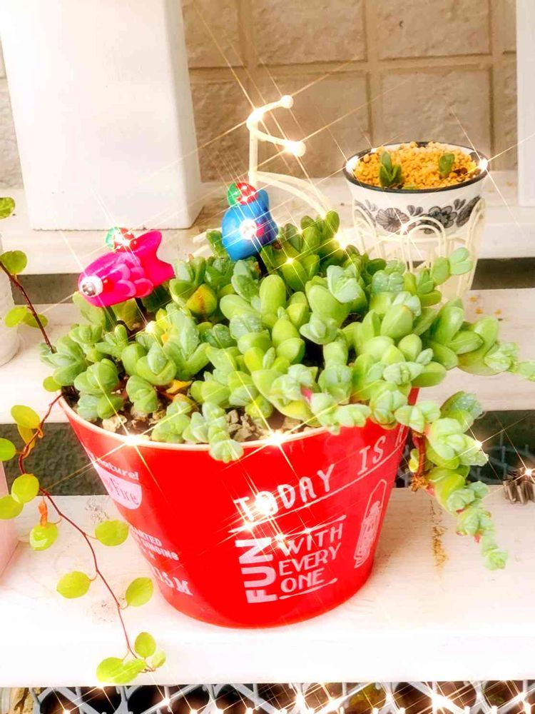 真っ赤な可愛い鉢に、ぷくぷくトトさんもキラキラ✨