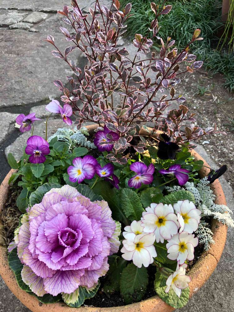 先日の葉ボタンとプリムラの寄せ植え