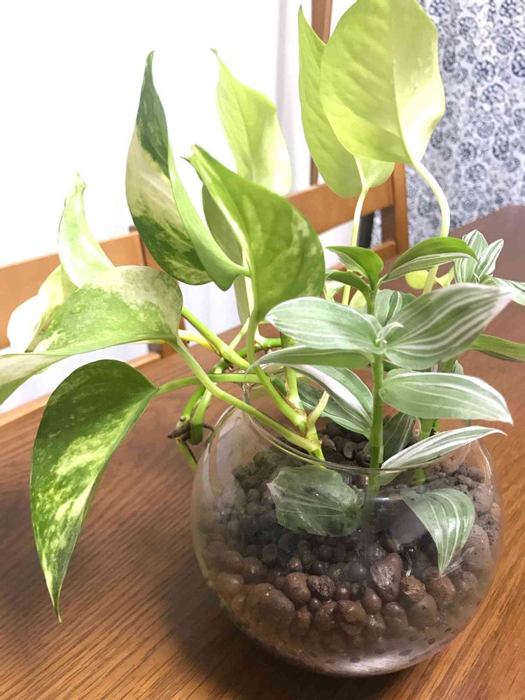 丸いガラスが可愛いので、プラスチックの取っ手を取ってハイドロボールで植物を入れてみた🌱