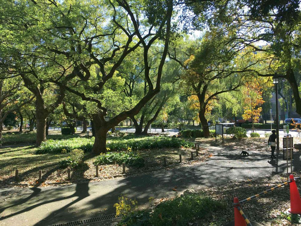 芝公園の巨木巡り。自生のでかいカヤとか、空襲で焼けたイチョウとかメタセコイアの林とか。でも自分的には貝塚の手前の景色がグッときました。屋外チル最高だの🐶