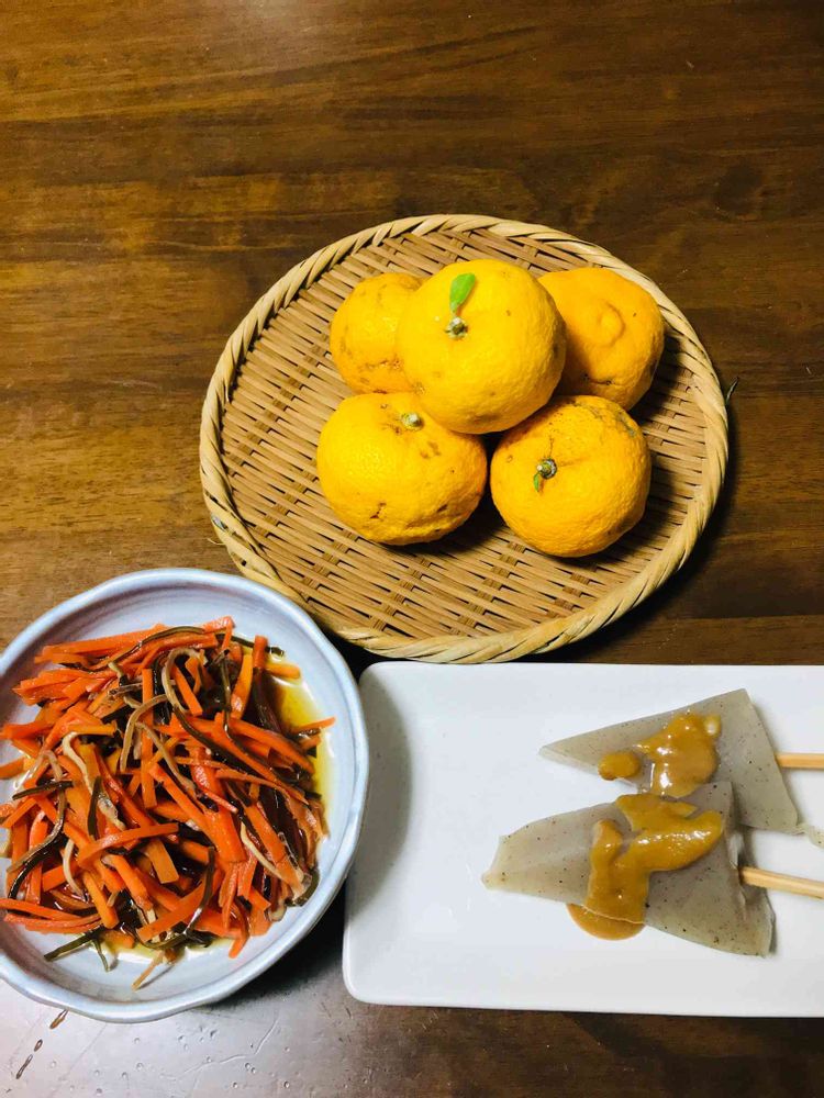 昨日、柚子が届いたので柚子味噌田楽🍢と柚子大根、福島の郷土料理いかにんじんを作りました😋