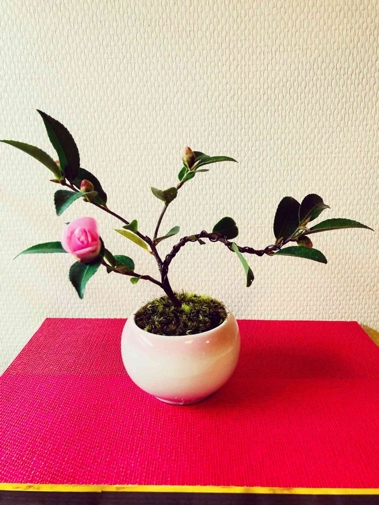 赤の敷物といい、鉢の苔といい何か共通で親近感を感じます。椿の色合いと白い器もいいですね。コメント&フォローありがとうございます、😌🌸💓です。