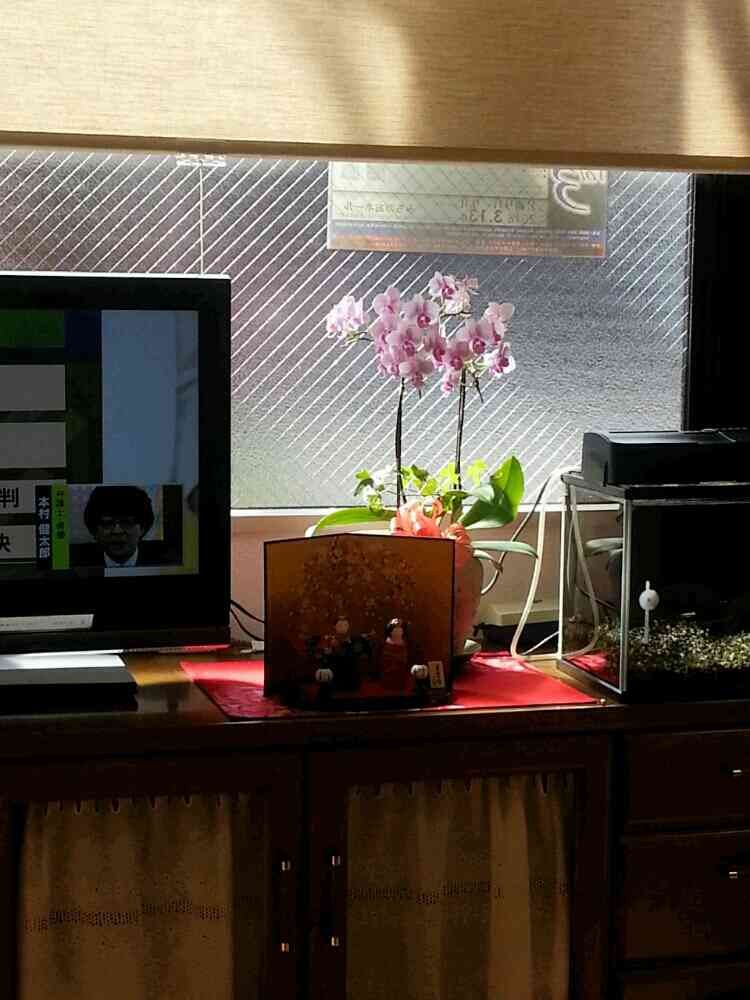 1月に1回の定期健診の病院の待ち合い室で胡蝶蘭に癒される。