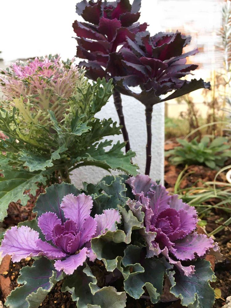 華やかに色んな寄せ植えもしてみたいけれど、初めてお迎えしたので、葉牡丹のみで植えてみました。