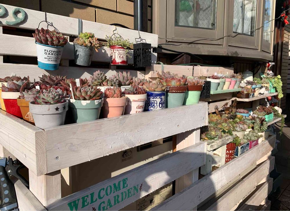お庭のない我が家は、パパさんがDIYしてくれた多肉棚とベランダ多肉で多肉ちゃんを育てています💕