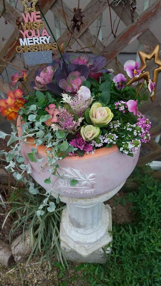 毎年 この時期に、葉ぼたんの寄せ植え作ります🎵
