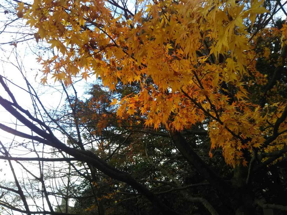 上を見上げると黄葉が❗️