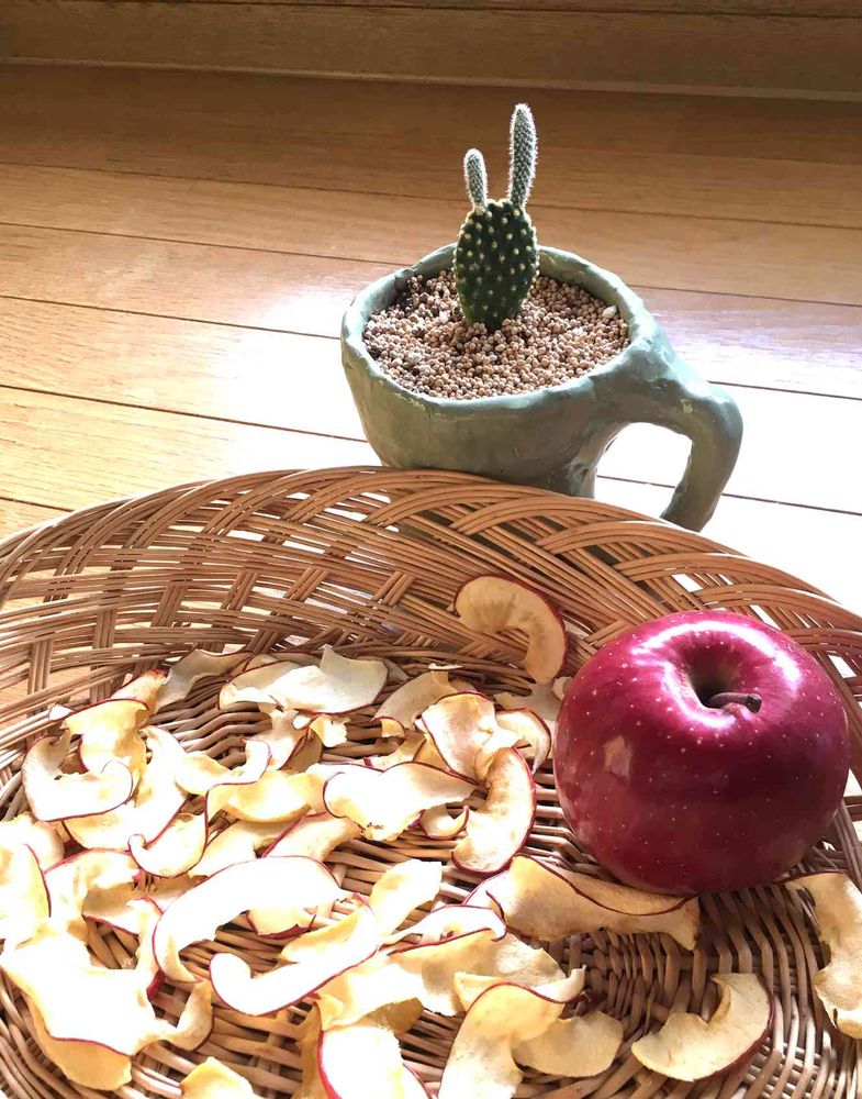 🍎チップスはスライスした後に、塩を適量入れた水にさらして、優しく水分を拭き取って下さいね!乾くのが早いですから🥰後は好みの乾燥ですね!薄いと2日でOKです✨塩で甘みがまして、美味しかったですよ٩(ˊᗜˋ*)و