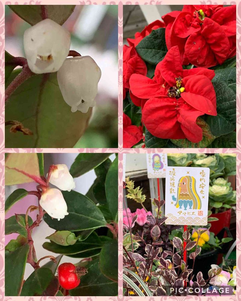 おきょうさんのお出かけ先,ポインセチア,チェッカーベリーの花の投稿画像