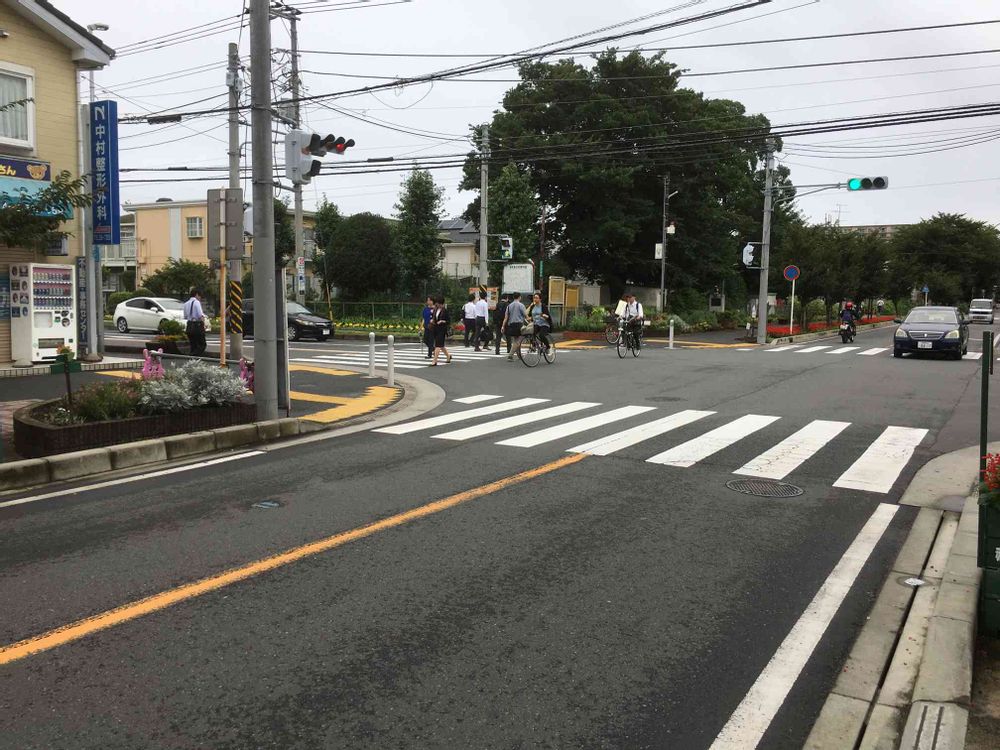 右上(青信号)方向にここからサルビア通りが始まります。住宅地方向です。
