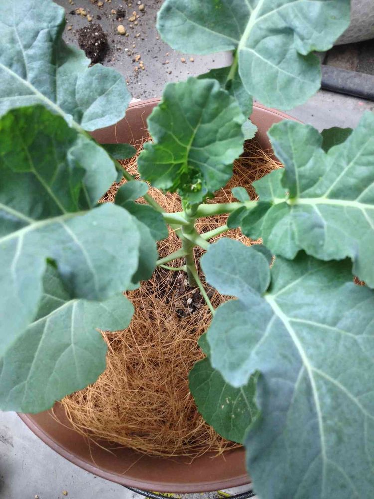 1番大きいブロッコリー①よく分からない虫に時々食べられてるが、多分順調。