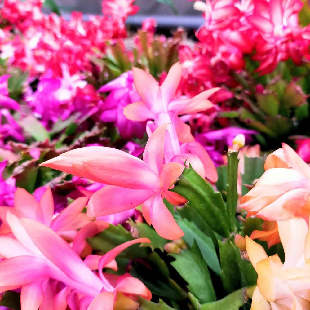 色とりどりのデンマークカクタス(シャコバサボテン)の花が満開満開✨鮮やかで元気になりますね😆🌈