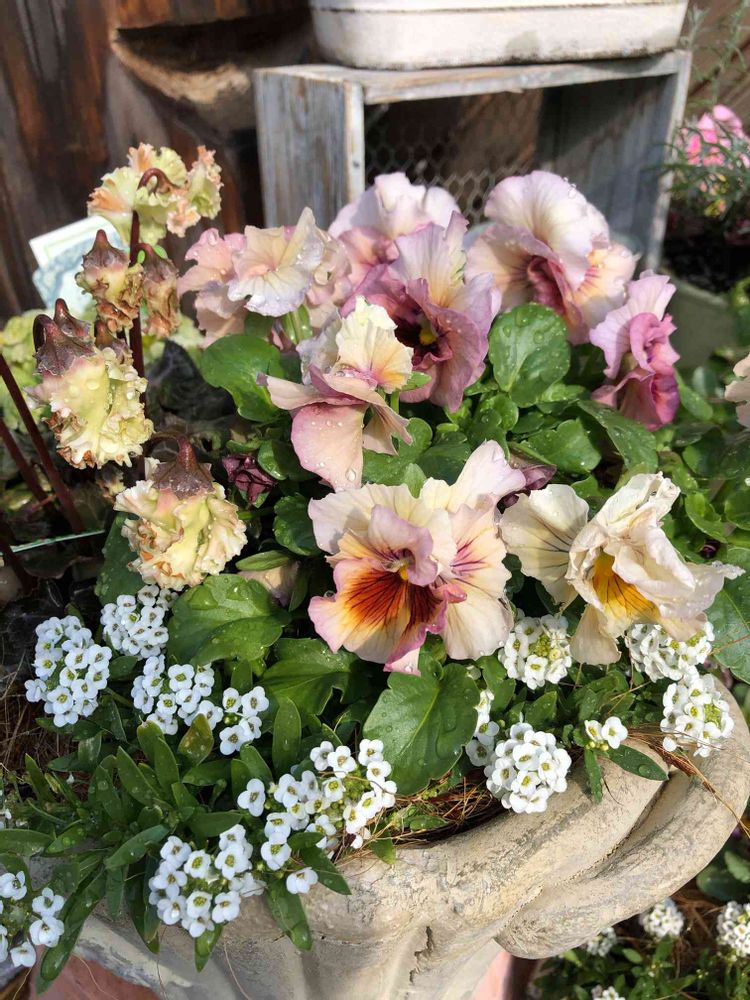 ガーデンシクラメンとパンジーさんの色味が何とも言えない良い色💕