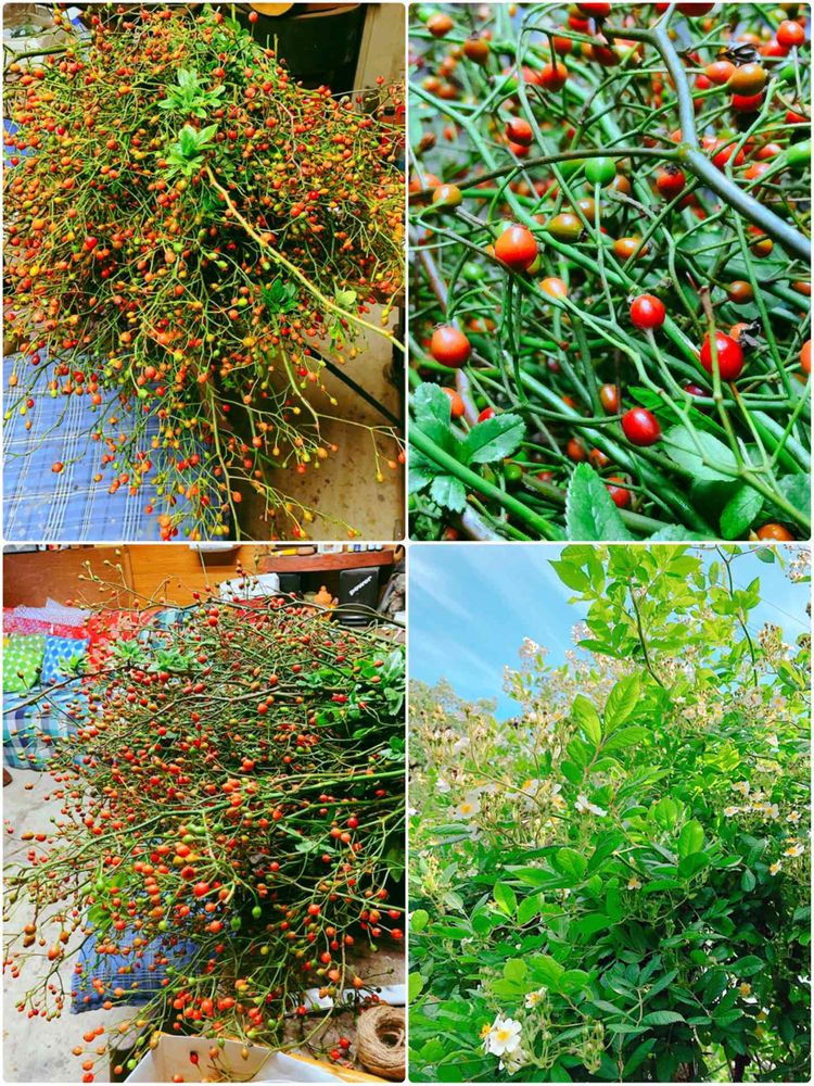 時間が空いている時に天気に恵まれず、やっと今日の午後に収穫できたのばらの実、ローズヒップ。