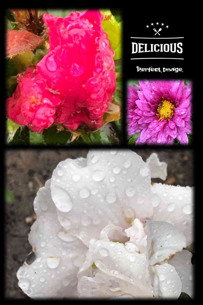 雨で水滴がついているお花、雰囲気あって素敵です✨