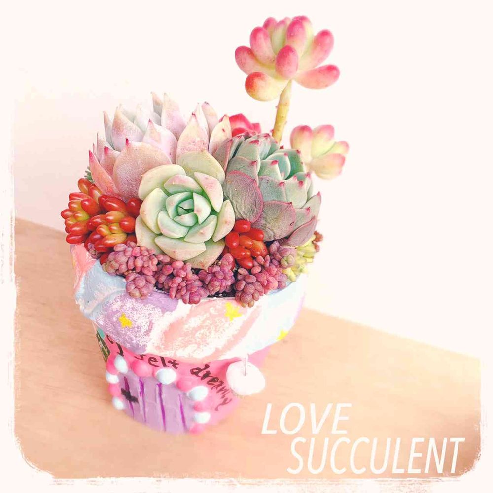 嬉しいですー(о´∀`о)ゆめかわ鬼っち鉢にプリプリ可愛い多肉ちゃんでおめかししました❤️