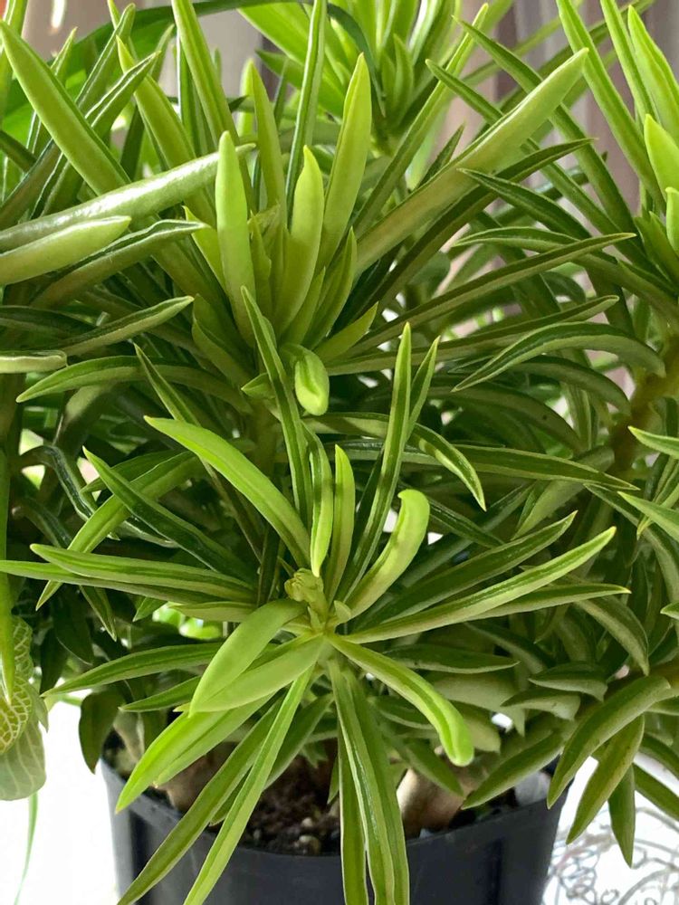 ヒョロヒョロしてしまいベランダの子になってました。もう寒くなるので入れましたが暗いので大丈夫かな?💦花芽付いてますね🥰