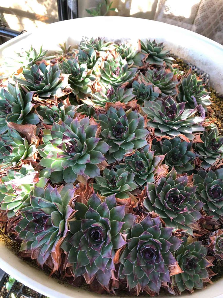 寒空の下ほったらかしのセンペルビウムが朝日を浴びて綺麗💕
