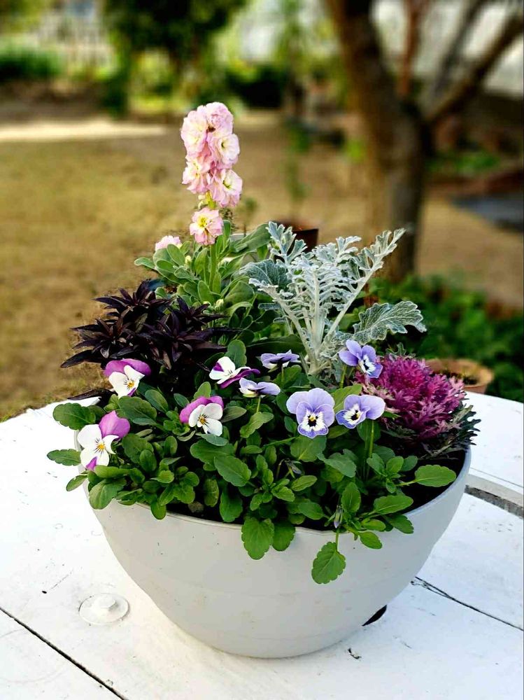寄せ植えしたビオラの花数が増えてきました。😄🎶