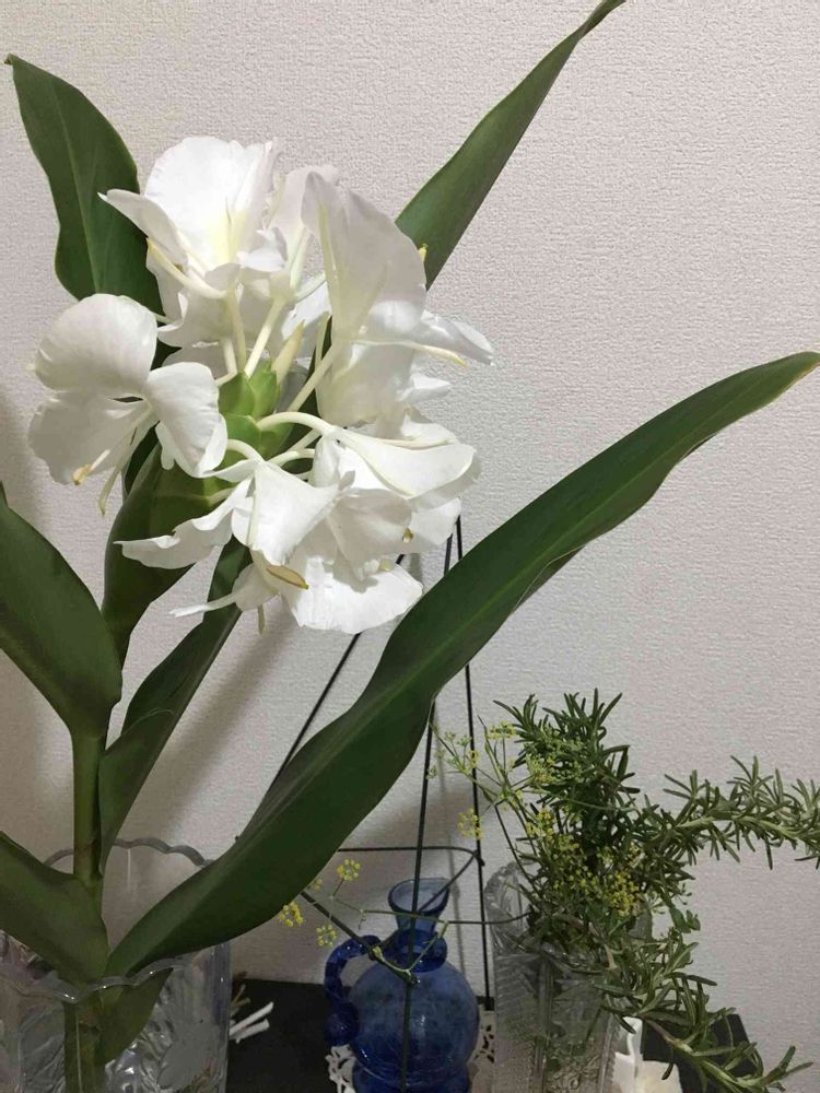 今朝初めて ジンジャーの花が咲きました。早速切り花にして玄関に飾りました。香水のように良い香りがします。