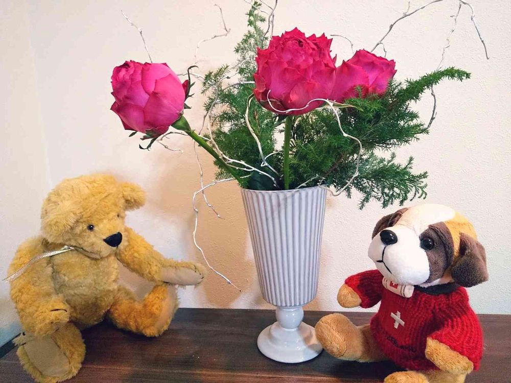 テディベアと薔薇