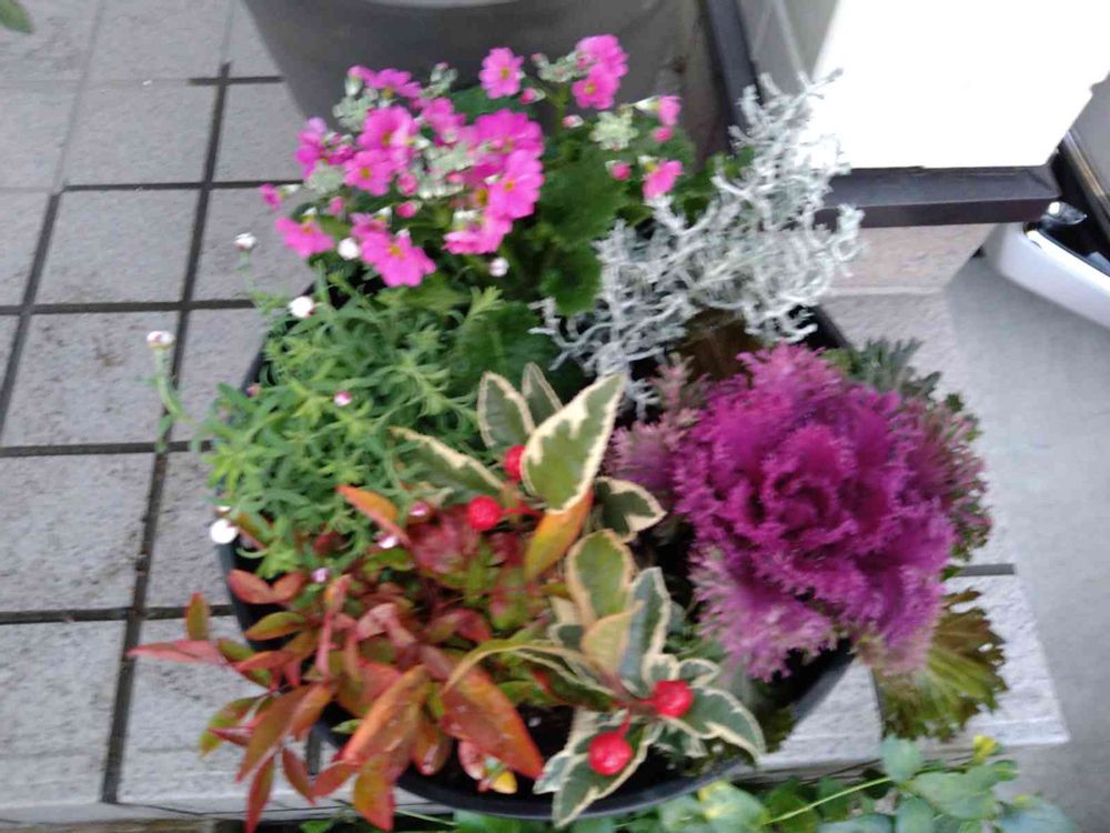 全くの初心者なのですが、ホームセンターにあったお花たちをなんとなく選んだらこういうふうになりました😄