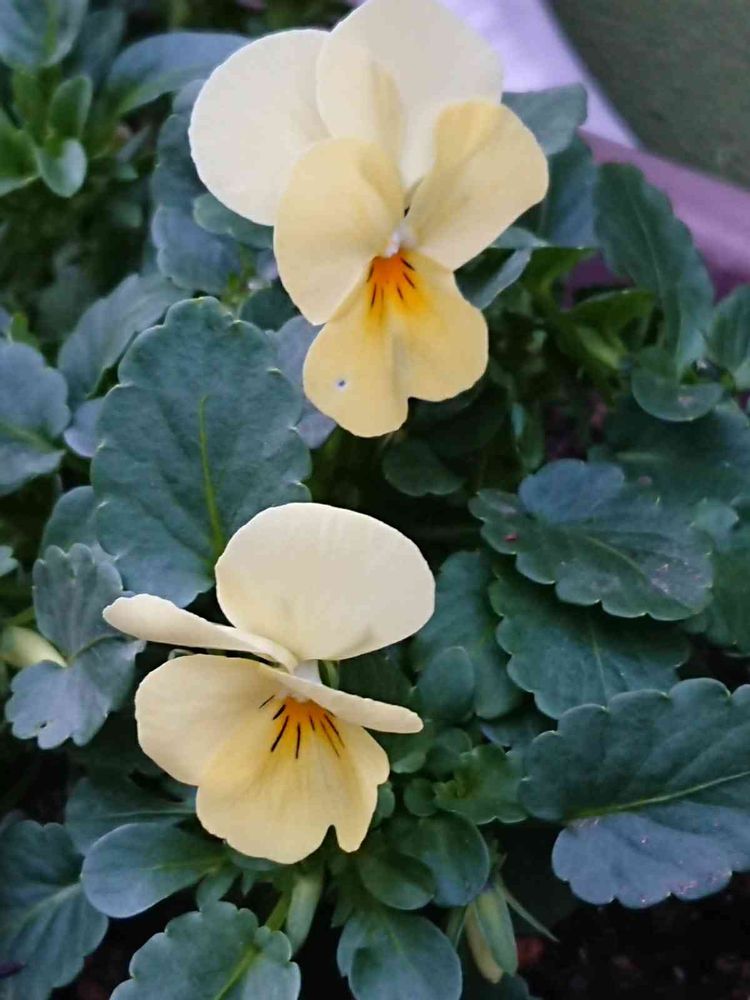 花いろが不明なまま買った4株のパンジーの3つ目は薄い黄色でした。