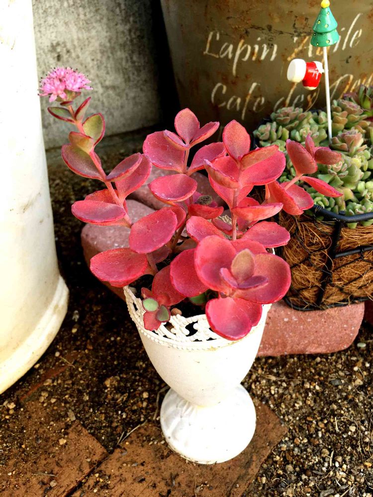 以前にpicしたミセバヤさんは緑色でしたが紅葉し、つぼみだったお花も咲いてきました✨