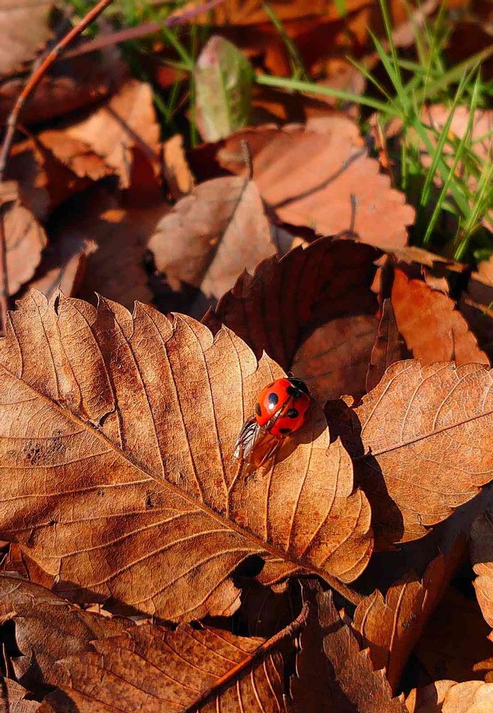 落ち葉の上で日向ぼっこのてんとう虫🐞